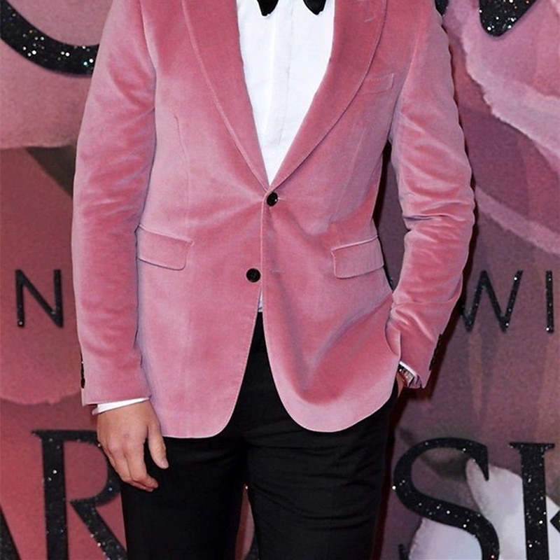 More information about Men's Blazer Jacket Closure collar Fashion Casual Velvet Solid Colored Pink Green Tailored Fit Single Breasted Two-buttons