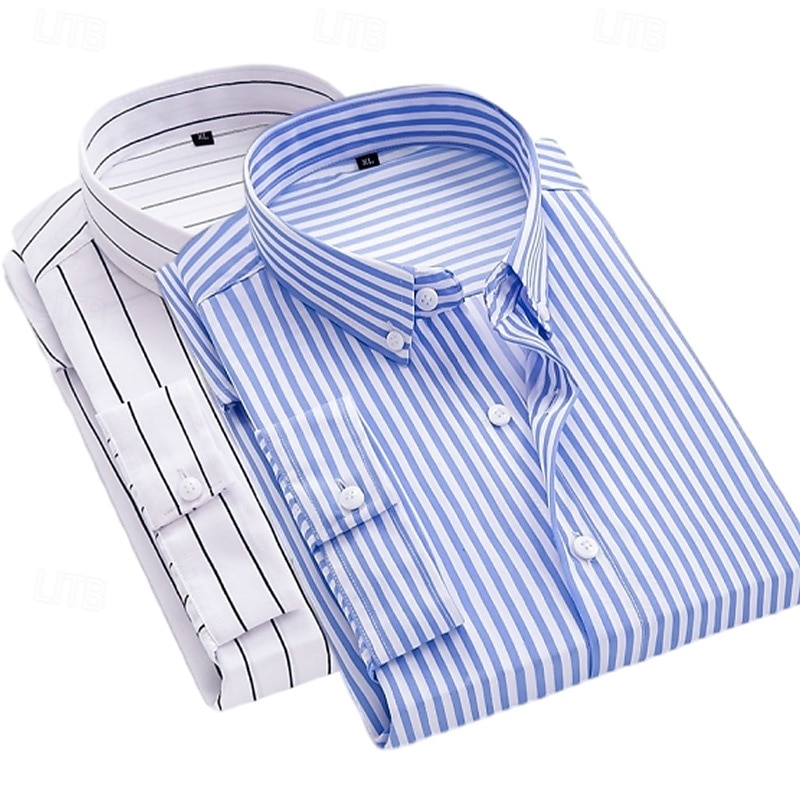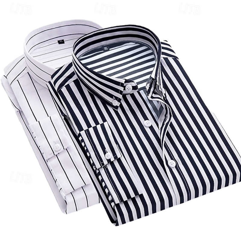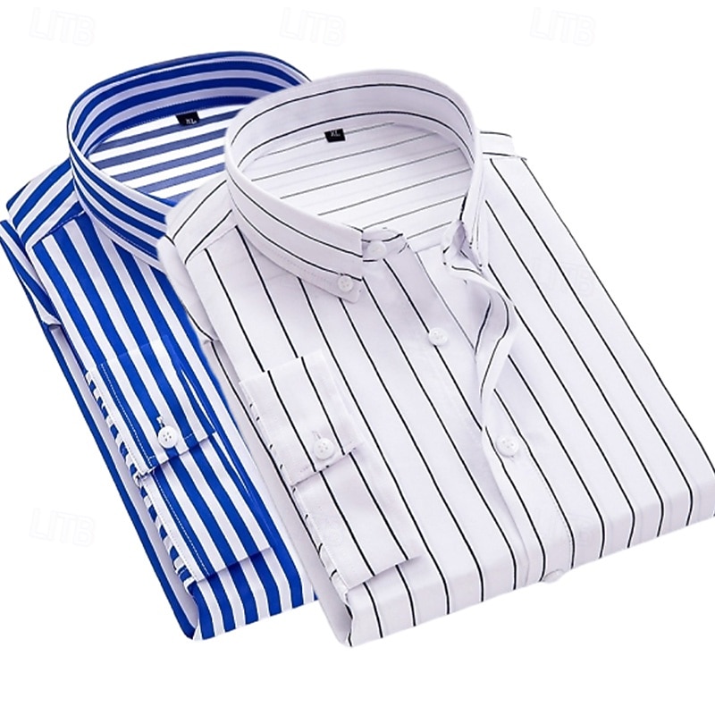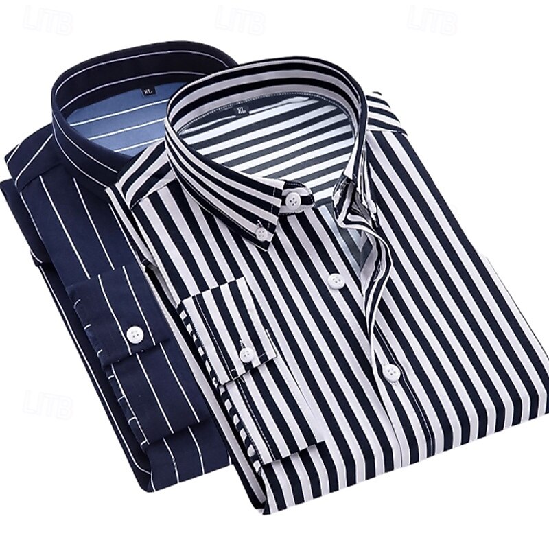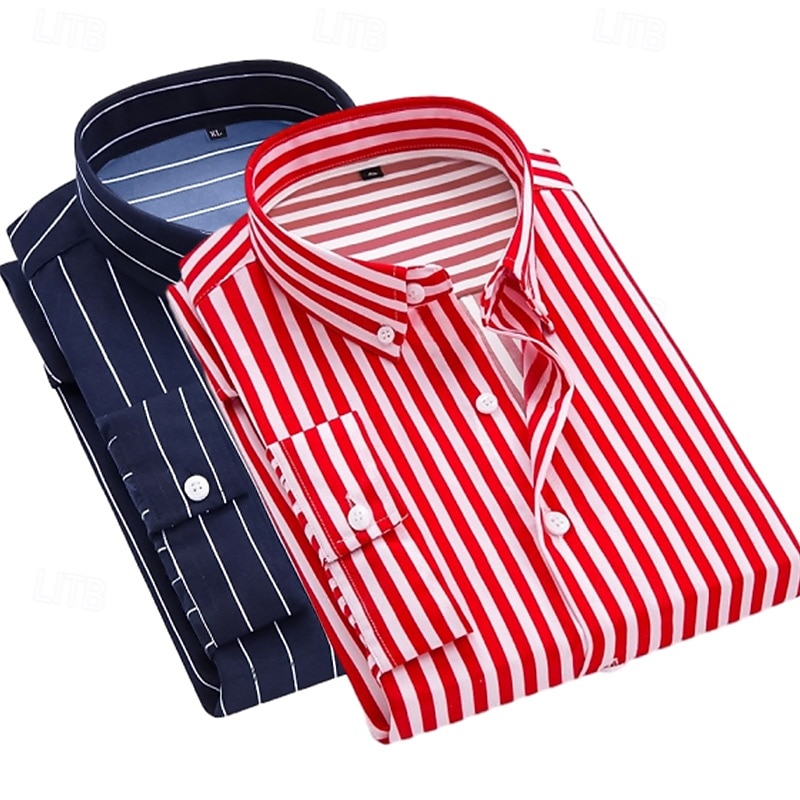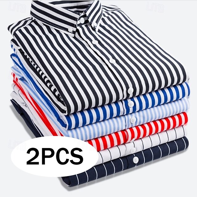 Men's Dress Shirt Button Down Shirt Striped Shirt Collared Shirt Striped Formal Wedding White+Red White+light blue Navy Blue+Black Navy Blue+Red Long Sleeve All Seasons Clothing Apparel Multi-pack 2