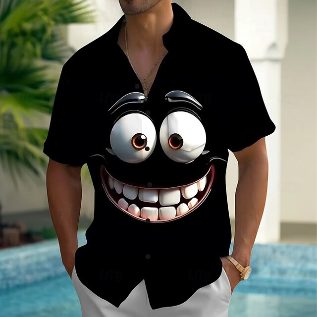 More information about Men's Cartoon Funny Smile Face Shirt Summer Shirt Button Up Shirt Short Sleeve Fashion Casual Vacation Party Holiday Summer Spring Turndown 3D Print Collared Shirts Front One Pocket Black
