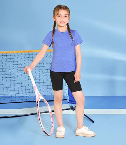 3 Pack Girls Athletic Shirts Short Sleeve Quick Dry Fit Crew Neck Activewear Summer Tees Tops for Kids Teens 5