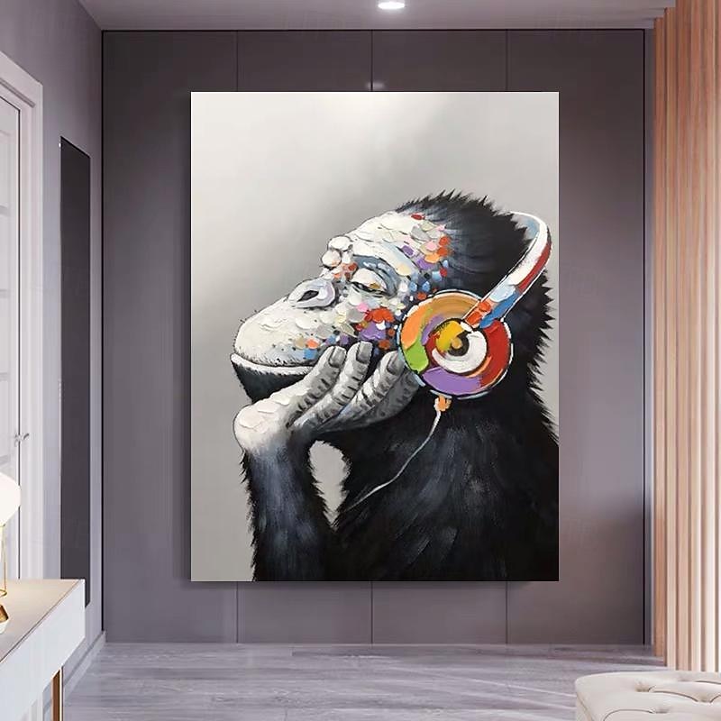 $77.99 - Mintura Handmade Abstract Animal Listen To Music Gorilla Oil Paintings On Canvas Wall Art Decoration Modern Picture For Home Decor Rolled Frameless Unstretched Painting 2025. Shop for cheap Animal Paintings online? Buy at lightinthebox.com on sale today!