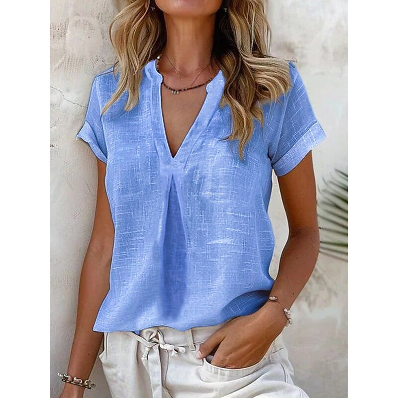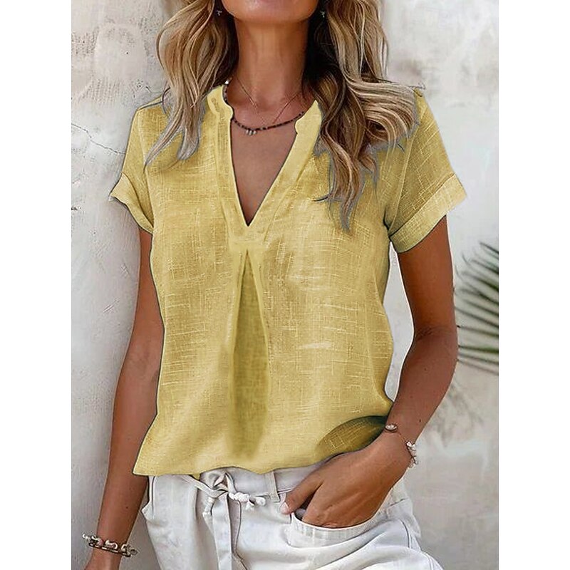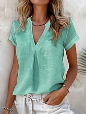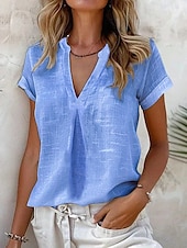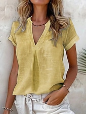 More information about Women's Shirt Cotton Linen Shirts Daily Business Short Sleeve Cap Sleeve High Neck Regular Tops Work Daily Yellow Blue Sky Blue Light Grey Summer