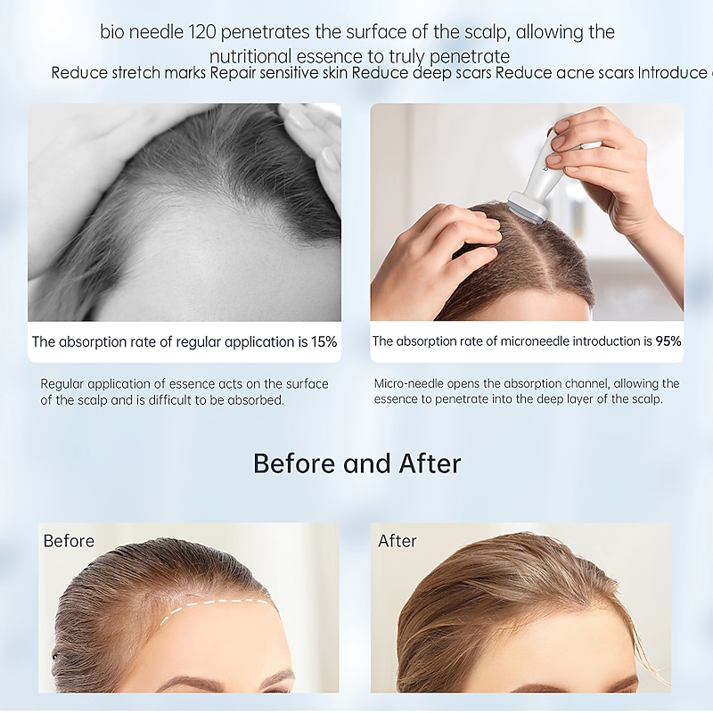HOT ! 120Pin Bio Needle Derma Stamp For Hair Growth Adjustable Needle Length Microneedling For Skincare