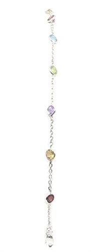 Sophia Fine Jewelry Multi-Color Gemstone 7" Bracelet,14k White Gold Cable Chain with Lobster Lock 6