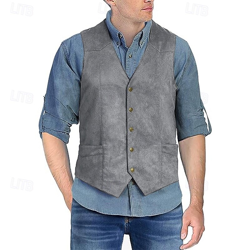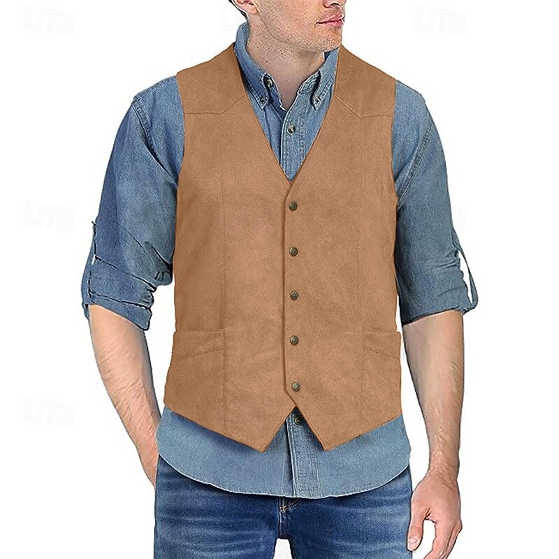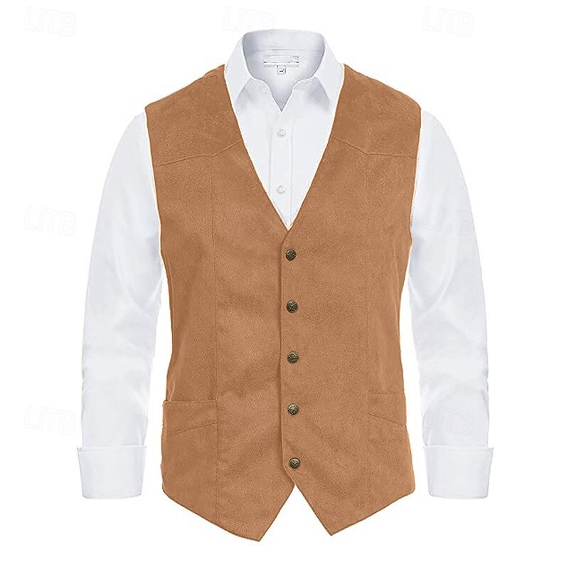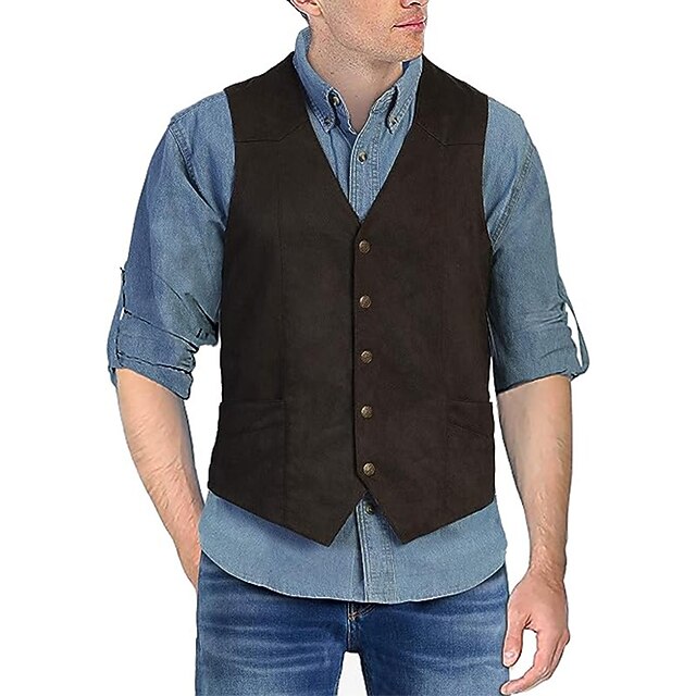 HOT ! Retro Vintage Vest Waistcoat West Cowboy Solid Color V Neck Fancy Dress Men's Bachelorette Party Adults' Vest