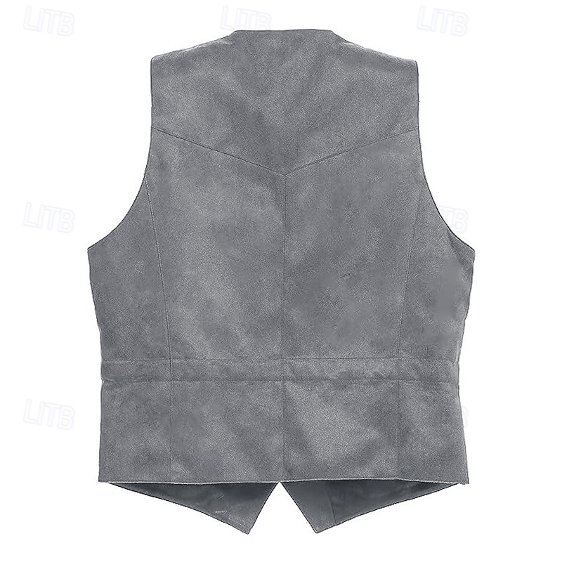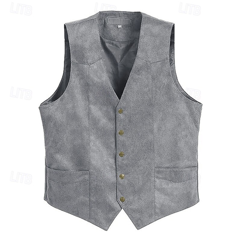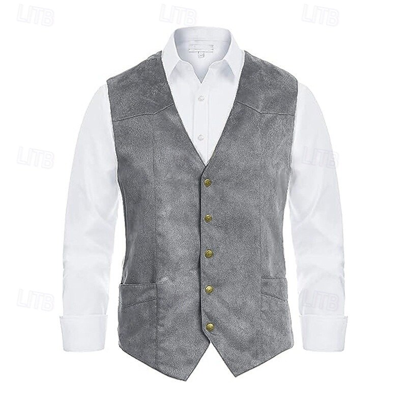 Retro Vintage Vest Waistcoat West Cowboy Solid Color V Neck Fancy Dress Men's Bachelorette Party Adults' Vest 5