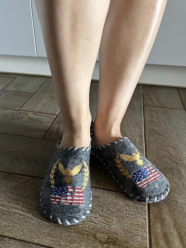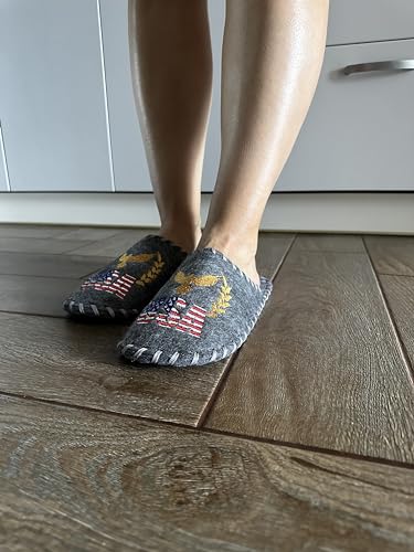 Sauna Felt Slippers with USA National Symbols - Disposable Indoor Hotel Slippers Comfort for Men and Women - Embroidered Souvenir Banya Shoes for Guests Made in Ukraine, Grey 6