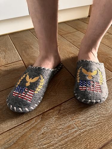 Sauna Felt Slippers with USA National Symbols - Disposable Indoor Hotel Slippers Comfort for Men and Women - Embroidered Souvenir Banya Shoes for Guests Made in Ukraine, Grey 7