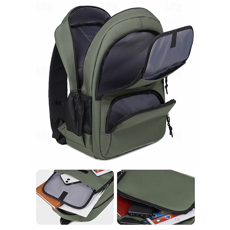 Men's Casual Backpack with Multiple Compartments, Durable Nylon Material, Stylish Design for School, Travel, and Everyday Use - Available in Green, Gray, Blue, and Black 16