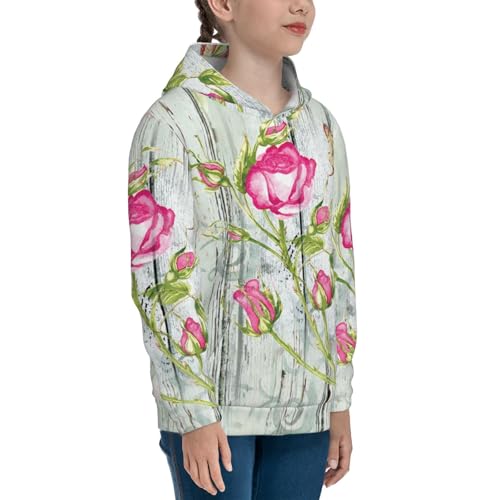 Vintage Wood Background with Floral Kid Hoodies Boys Sweatshirts Girls Pullover with Pocket 4