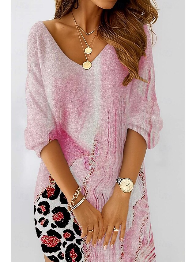 Women's Mini Dress Sheath Dress Shift Dress Party Casual Boho Party Daily Holiday Regular Fit Floral Graphic Animal Long Sleeve V Neck Pink Light Purple Orange Gray Spring Fall Winter Autumn 5