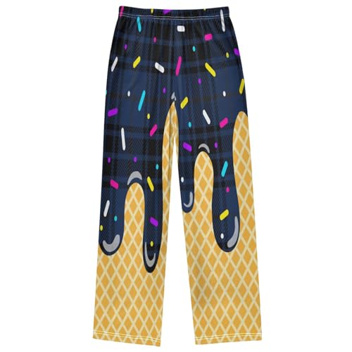 Boy's Pants Navy Checker Ice Cream Jogger Pants Elastic Waist Long Bottoms Trousers with Pockets 6-14 Years 6