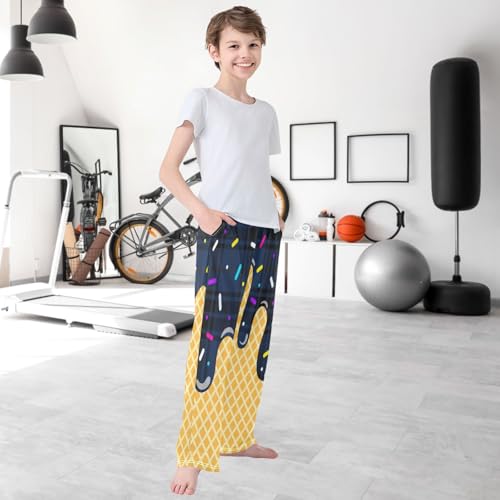 HOT ! Boy's Pants Navy Checker Ice Cream Jogger Pants Elastic Waist Long Bottoms Trousers with Pockets 6-14 Years