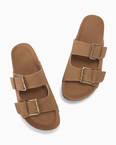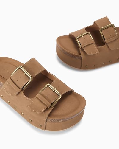Coutgo Women's Cork Platform Sandals Slip on Mules and Clogs Double Buckle Straps Summer Shoes 6