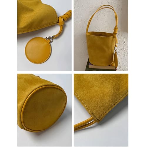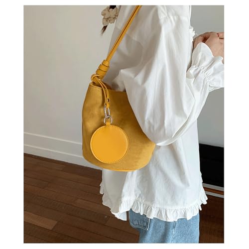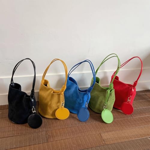 HOT ! Suede Purse Round Coin Charm Suede Bucket Bag for Women Casual Shoulder Purse Single Strap Alt Vintage Shoulder Bags Daily