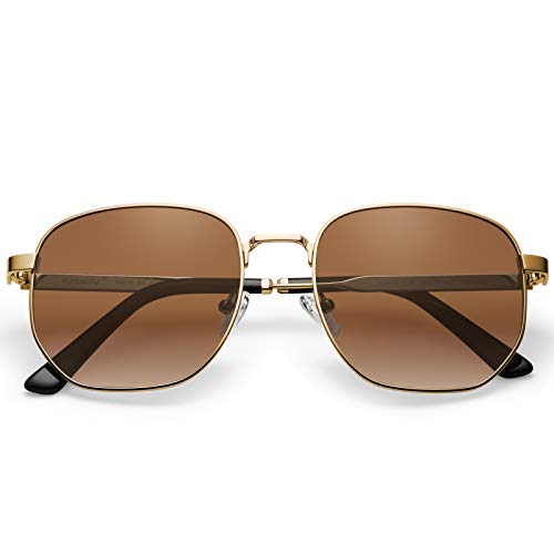 AVAWAY Polarized Sunglasses for Womens Gold Metal Frame UV Protection Category 3 Sun Shades Sunnies Square 7