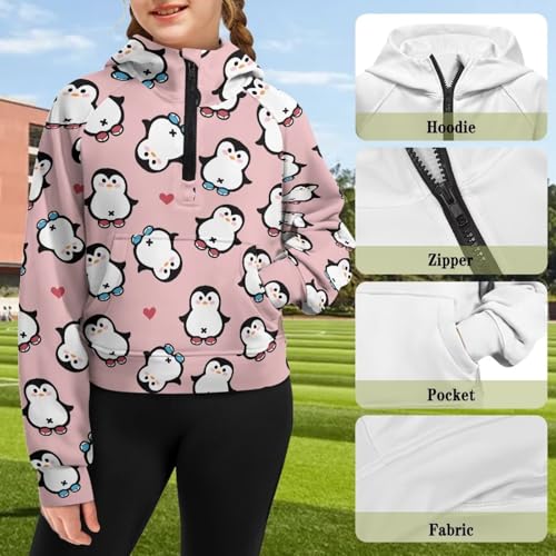 Girls Half Zipper Collar Cropped Hoodies Long Sleeve Raglan Pullover Sweatshirt Relaxed Fit Hoodie with Pocket 6