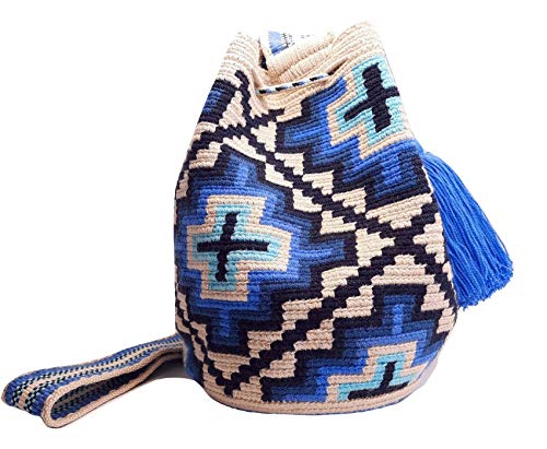 HOT ! MEDIUM - - COLORFUL Wayuu Mochila Bag For Women original bolsa tejida colombiana authentic crochet pattern Gift from Colombia (Blue Ethnic - Medium)