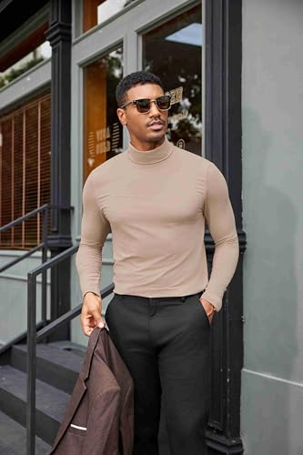COOFANDY Mens Turtleneck Shirts Slim Fit Shirt Tops Lightweight Pullover Thermal Sweater Casual Long Sleeve Shirt 3