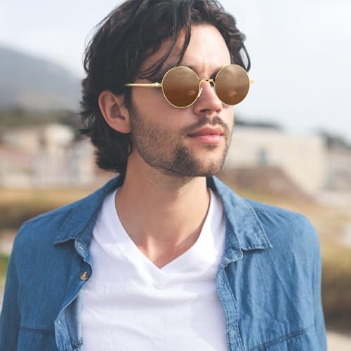 NACHLYNN Round Hippie Sunglasses Metal Border Circle Hippie Glasses UV380 Protection 70s Sunglasses for Men Women Party Favor 7