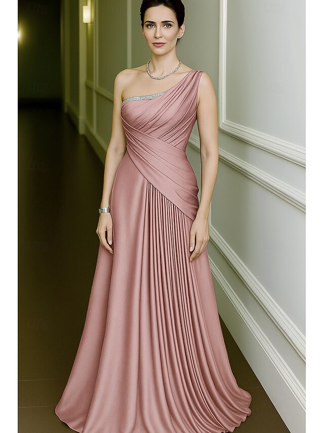 $144.99 - Green Blue A-Line Evening Gown Elegant Dress Formal Wedding Floor Length Sleeveless One Shoulder Stretch Satin with Pleats Ruched 2025 2025. Shop for cheap Empire Waist Evening Dresses online? Buy at lightinthebox.com on sale today!