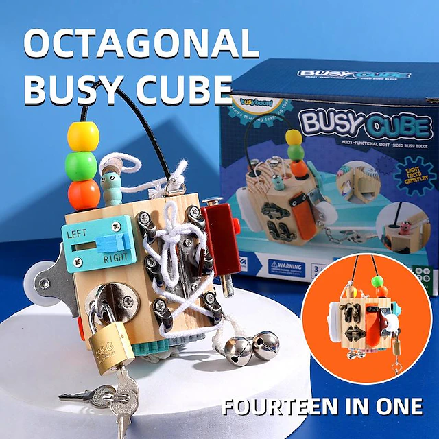 Montessori Teaching Aids Multi-Functional Eight-Sided Busy Cube Busy Board Go to School Holiday Gifts for Kids 6