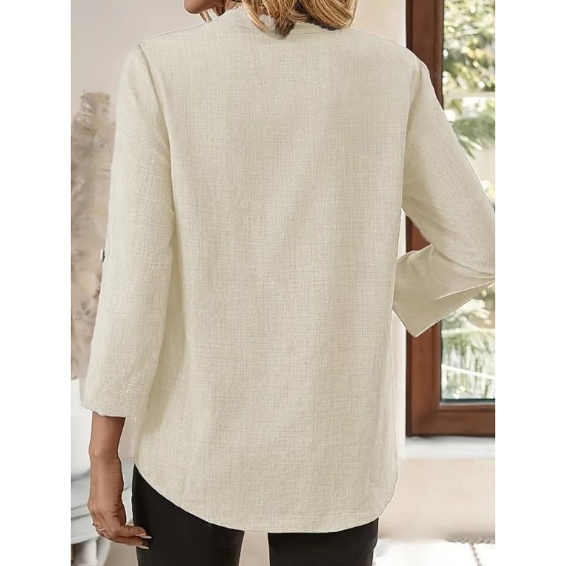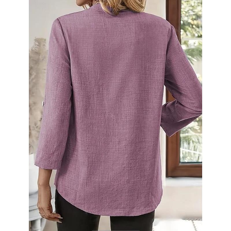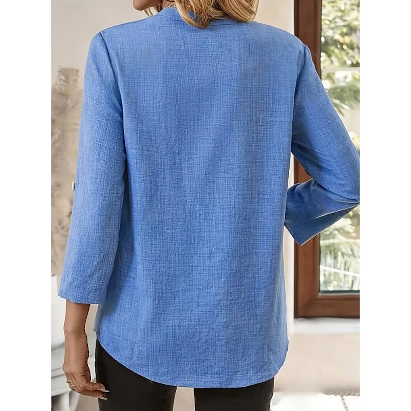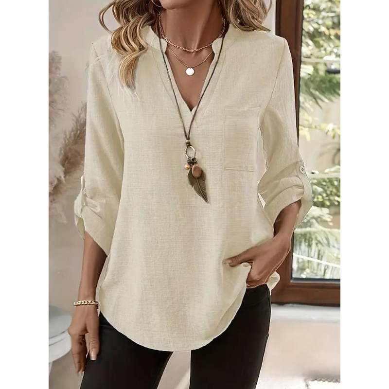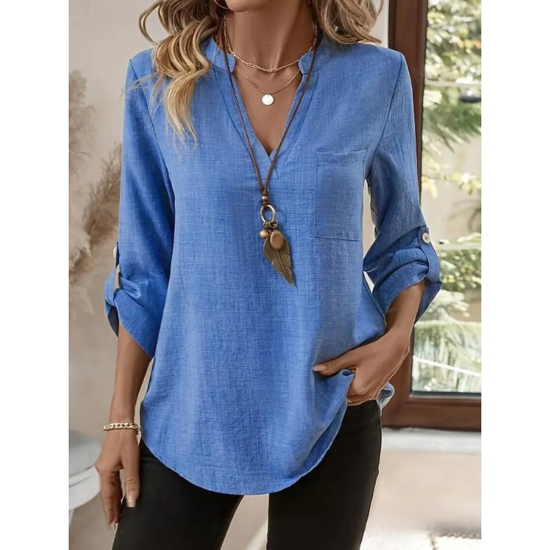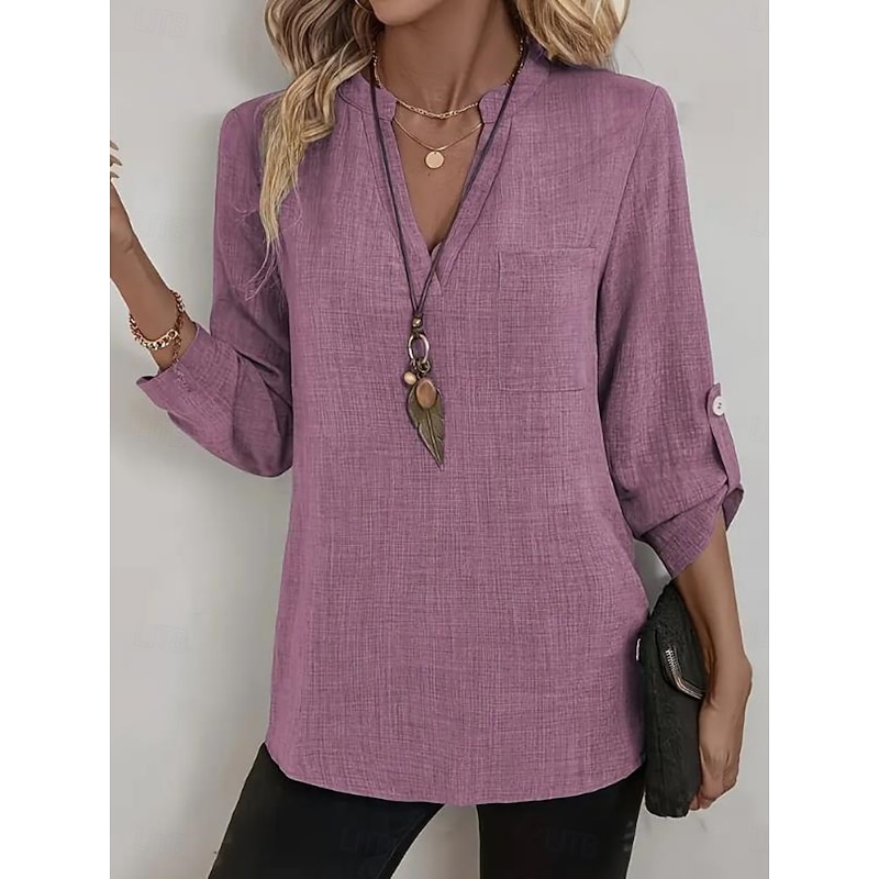 $17.99 - Cotton Linen Solid Color V Neck Shirts for Women in Blue Purple Green Khaki Beige 2025. Shop for cheap Plain Tops online? Buy at lightinthebox.com on sale today!