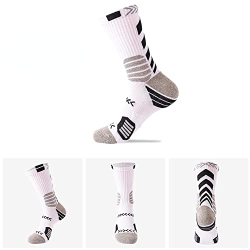 Men's Socks Trendy Contrast Color Long Tube Basketball Socks Towel Bottom Sweat-Absorbent Breathable Professional Sports Socks (Children's 32-37 average size,Black and White) 5