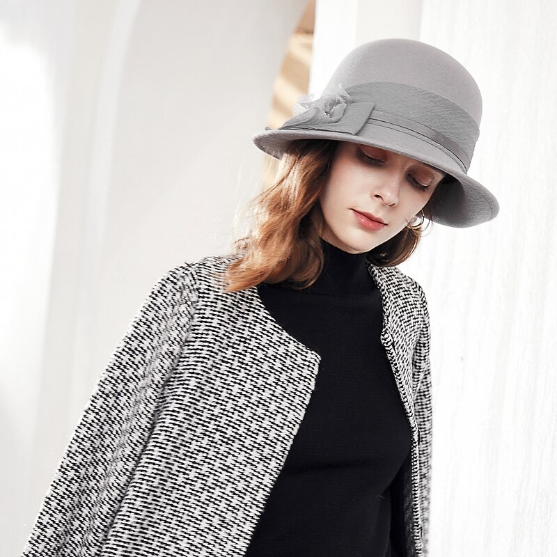 Hats 100% Wool Bucket Hat Casual Horse Race Retro Classic Wedding With Rhinestone Headpiece Headwear 8