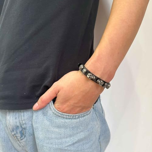 Punk Rock Skull Head Wristband Pu Leather Belt Buckle Adjustable Arm Cuff Bracelet 6
