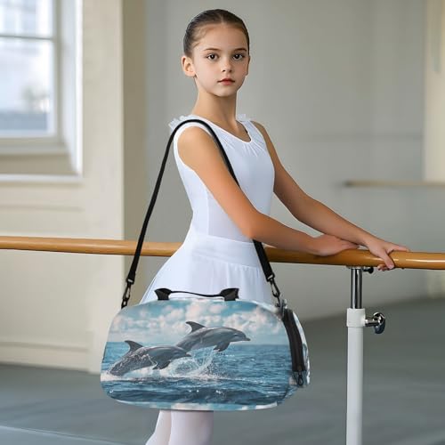 YETTASBIN Sport Travel Duffel Bag for Girls Boys, Dolphin Large Waterproof Weekender Overnight Bag, Detachable Shoulder Strap Gym Bag with Shoe Compartment & Wet Pocket 6