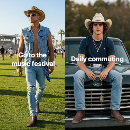 • Convenient Side Zipper:Men's cowboy boots with a sleek interior side zipper for hassle-free on/off. No laces needed—just unzip and slide on. Maintains classic western style while adding modern convenience, ideal for quick transitions anywhere