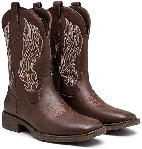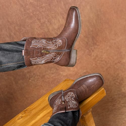 • Extra Toe Room:Men's square-toe cowboy boots blend classic western style with foot-friendly design. Squared toe box offers extra room for natural movement, eliminating pinch. Timeless silhouette balances tradition and comfort for all-day wear