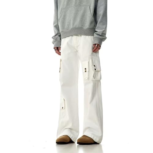 HOT ! Men Baggy Cargo Jeans Y2K Hip Hop Mid Rise Straight Leg Denim Pants with Pockets Teen Boys Casual Loose Jeans Streetwear