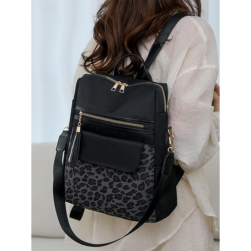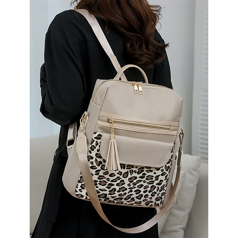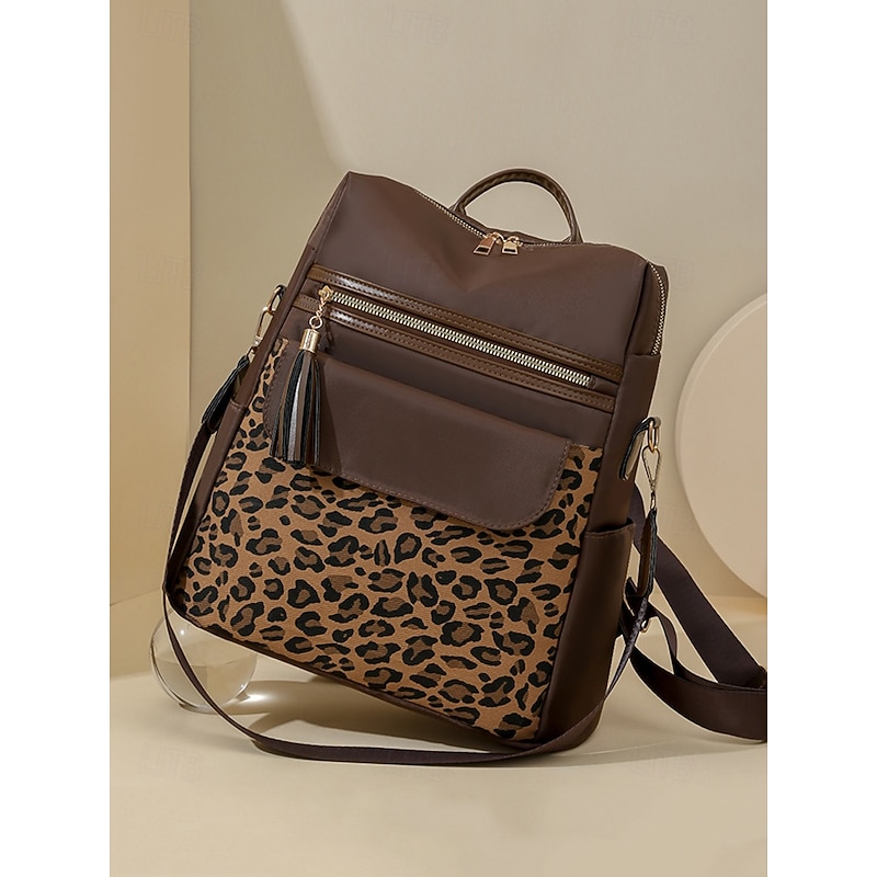 $34.99 - Women's leopard print fabric patchwork backpack, can be carried on one shoulder, with multiple zippers, perfect for school, travel and casual outings 2025. Shop for cheap Fashion Backpacks online? Buy at lightinthebox.com on sale today!