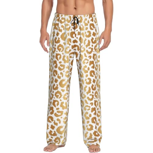 HOT ! Mens Pajama Pants - Gold Leopard Fashion Print Soft Sleep Lounge Pants For Men, Casual Pj Bottoms With Pockets