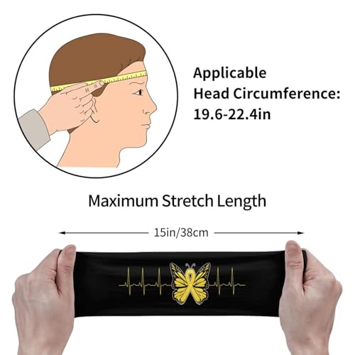 Gold Butterfly Ribbon Heartbeat Childhood Cancer Awareness Adjustable Sports Headband Moisture-Wicking Sweatband for Running & Workout 7