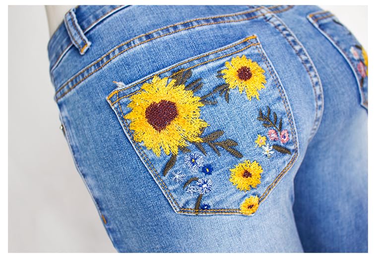 • Quality Materials**The Jeans is made of 70% cotton 28%polyester 2%elaster,Perfectly show your legs and curvy figure. The soft, stretchy fabric feels comfortable against your skin, while the delicate floral embroidered detailing adds a touch of fashion.