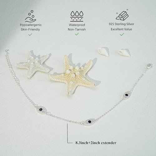 • 【Trendy Silver Anklet】This delicate silver anklet features three dazzling evil eye charms, each crafted with intricate blue and white detailing. Symbolizing luck, protection, and positive energy, this anklet is more than just a beautiful accessory — it's a powerful talisman against bad luck. Lightweight and minimalist, it adds a subtle sparkle to your every step.