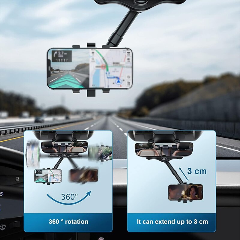HOT ! Multifunctional 360 Rotatable Car Rearview Mirror Phone Holder Mount Multifunctional Rearview Mirror Phone Holder Adjustable Universal Cell Phone Holder for Car Compatible All Smartphones