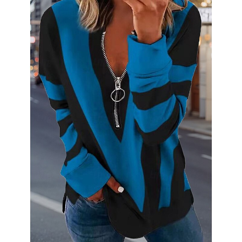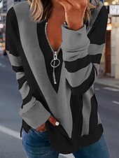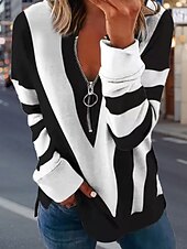 More information about Women's Pullover Sweatshirt Zip Up Sweatshirts Graphic Geometric Fashion Casual Long Sleeve Crew Neck Regular Tops Street Dailywear Zipper Print White Blue Purple Orange Gray Spring Fall Winter