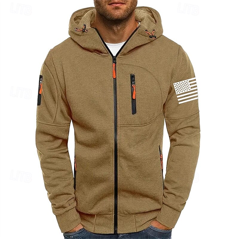 More information about Men's Hoodie Full Zip Hoodie Black White Wine Army Green Navy Blue Hooded National Flag Zip Up Pocket Sports & Outdoor Daily Holiday Polyester Streetwear Basic Casual Spring Fall Clothing Apparel