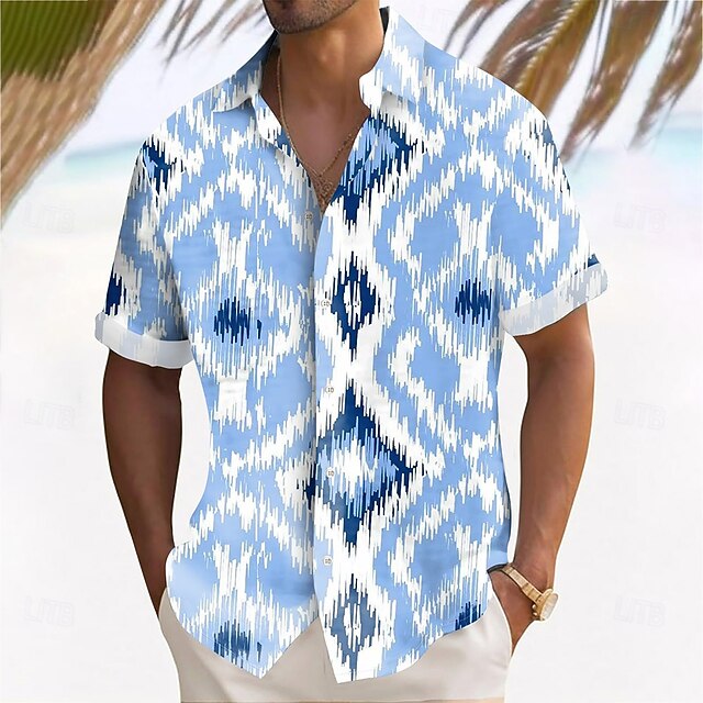More information about Men's Geometric Plaid / Check Shirt Summer Shirt Button Up Shirt Short Sleeve Fashion Casual Outdoor Vacation Dailywear Summer Spring Turndown 3D Print Collared Shirts Blue Purple