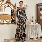 More information about Sheath / Column Evening Gown Vintage Dress Formal Masquerade Floor Length Long Sleeve Jewel Neck Sequined with Glitter Sequin