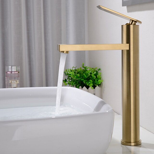 HOT ! Bathroom Sink Faucet - Single Brushed Gold Centerset Single Handle One HoleBath Taps