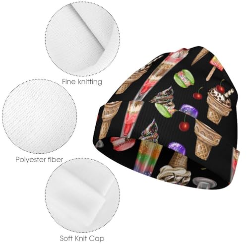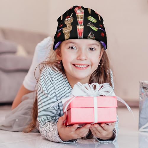Ice Cream and Cherry Macaron Pattern Kids Beanie Hat for for Girls Boys Children Cap Winter Knitted Chemo Cancer Headwear Accessories Gifts Decoration 5