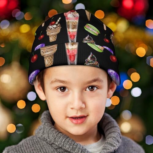 Ice Cream and Cherry Macaron Pattern Kids Beanie Hat for for Girls Boys Children Cap Winter Knitted Chemo Cancer Headwear Accessories Gifts Decoration 7