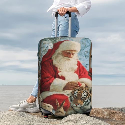 Santa Claus And Animals Rabbits Parrot Tiger Elastic Travel Luggage Covers Dustproof Scratch-Resistant Suitcase Protector Fit 22-24 Inch 4