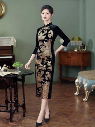 More information about HEARTTOUCH Elegant Women's Velvet Cheongsam Vintage Chinese Qipao Cocktail Party Bodycon Dresses Long Summer Qipao