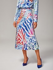 More information about Women's Watercolor Leopard Satin Mermaid Skirt Elastic Waistband Lined Elegant Stylish Casual Bold Print Daily Work Fall